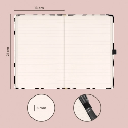 V zvezku najdete 172 strani prijetnega rumenega papirja, idealnega za vsakodnevno pisanje, načrtovanje in ustvarjalne ideje. Kompaktne mere 13 × 21 cm se udobno prilegajo torbi ali nahrbtniku, notranji žep pa zaščiti proste listke, vizitke ali nalepke.