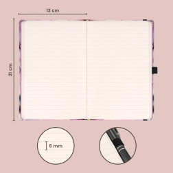 Stilni zvezek NOTIQUE z motivom sakure je idealen za vsakodnevno pisanje. Zaradi trdnih platnic in elastike bo vsebina varna, medtem ko zanka za svinčnik in praktičen notranji žep olajšata organizacijo drobnih predmetov.