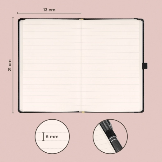 Skupaj 172 strani na rumenem papirju je idealnih za vsakodnevno zapisovanje, načrtovanje in kreativne ideje. Zahvaljujoč dimenziji 13 × 21 cm se zlahka prilega torbici ali nahrbtniku in je odličen sopotnik za v službo, šolo ali na pot.