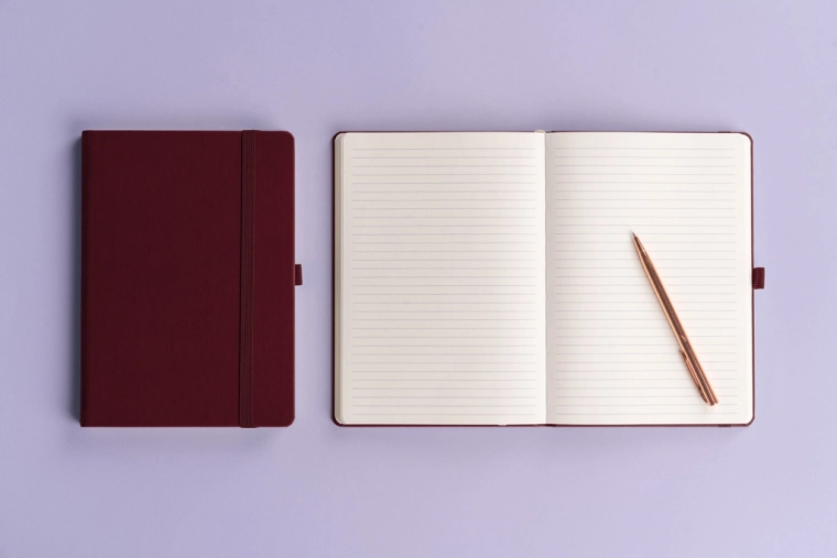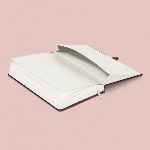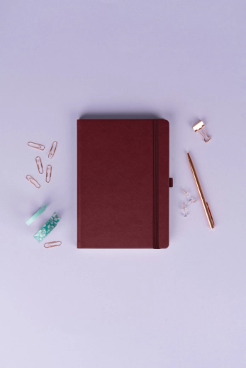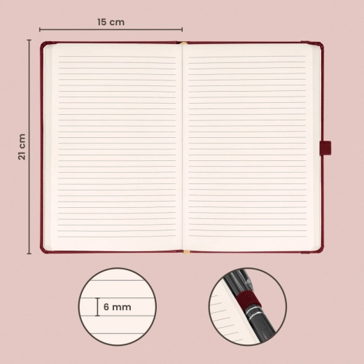 Praktična mera 15 × 21 cm se udobno prilega v torbo ali nahrbtnik, elegantna barva bordo pa vašim zapiskom doda pridih sloga. Zvezek je idealen za delo, šolo in osebno planiranje.