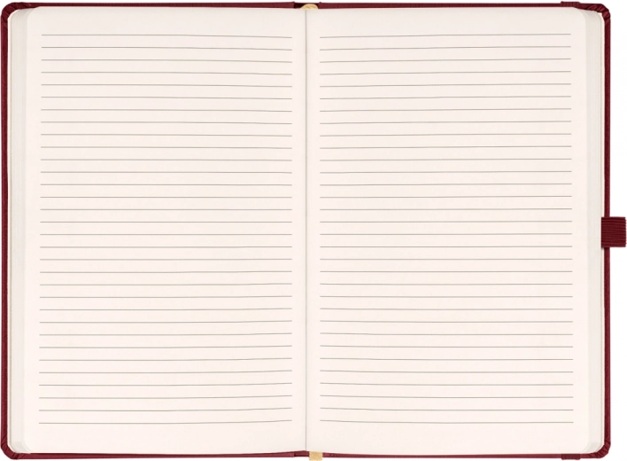 Eleganten črtasti zvezek NOTIQUE iz materiala balacron v odtenku bordo in mere 15 × 21 cm. Ponuja izjemno odporen površinski sloj in udobno pisanje za vsakodnevne zapiske.