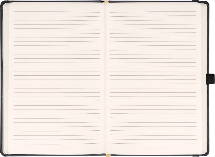 Črtasti zvezek NOTIQUE iz balacrona v črni barvi, 15 × 21 cm. Odporna površina za vsakodnevne zapiske za delo in šolo.
