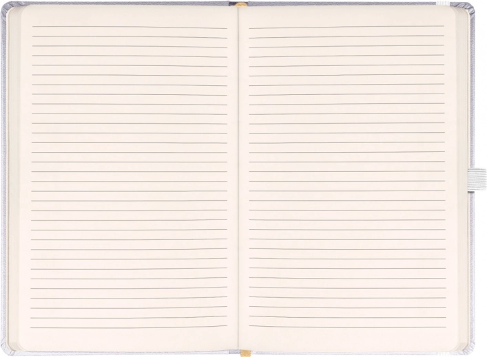 Eleganten črtast zvezek v izvedbi Balacron s srebrno površino in merami 15 × 21 cm. Odpornost zunanjega materiala je izjemno visoka proti poškodbam, zato je idealen za vsakodnevno uporabo v službi, šoli in na poti.