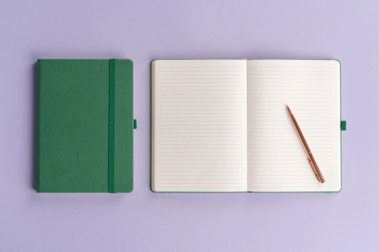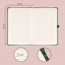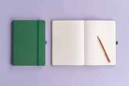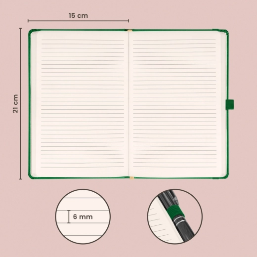 Stilska beležnica Aprint v zeleni barvi je odlična izbira za pisarno, šolo in na poti. Črtasta notranjost olajša pregledno vodenje zapiskov, prijetna površina z nežno strukturo pa deluje profesionalno in elegantno.