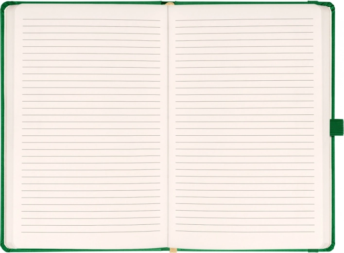 Elegantna črtasta beležnica Aprint v zeleni izvedbi ponuja klasičen dizajn, praktičnost za vsakodnevno pisanje in površino z nežno strukturo, na katero je mogoče enostavno vtisniti logotipe podjetij.