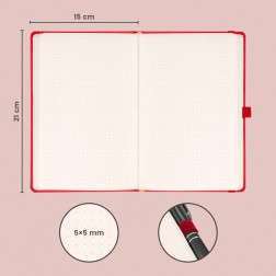 Pikčaste strani nudijo prilagodljivost za pisanje, risanje in bullet journal. Površina platnic spada med najbolj priljubljene – je odporna in omogoča enostavno vtiskovanje logotipov podjetja, zato je primerna tudi kot poslovno darilo.