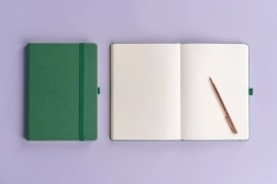 Odkrijte praktičen in eleganten dodatek za pisarno in šolo. Pikčasta beležnica NOTIQUE Aprint združuje klasičen dizajn in brečasno eleganco v priljubljeni zeleni izvedbi. Nežna struktura platnic deluje profesionalno in je odlična za branding z vtisom/logotipom podjetja.
