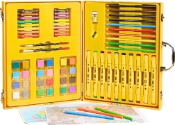 Ta bogato opremljen likovni set je odlična izbira za male umetnike, ki želijo preizkušati različne tehnike in ustvarjati barvite slike. Praktičen rumen kovček z veselým motivom račke ohranja vse pripomočke pregledno na enem mestu in je idealen tako za na pot kot za doma.