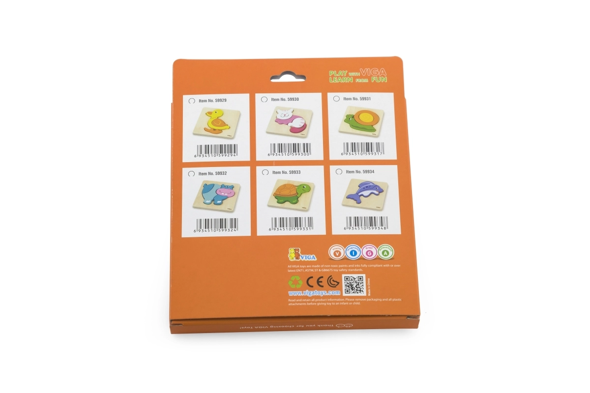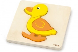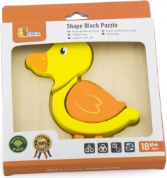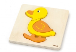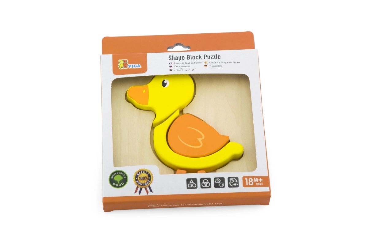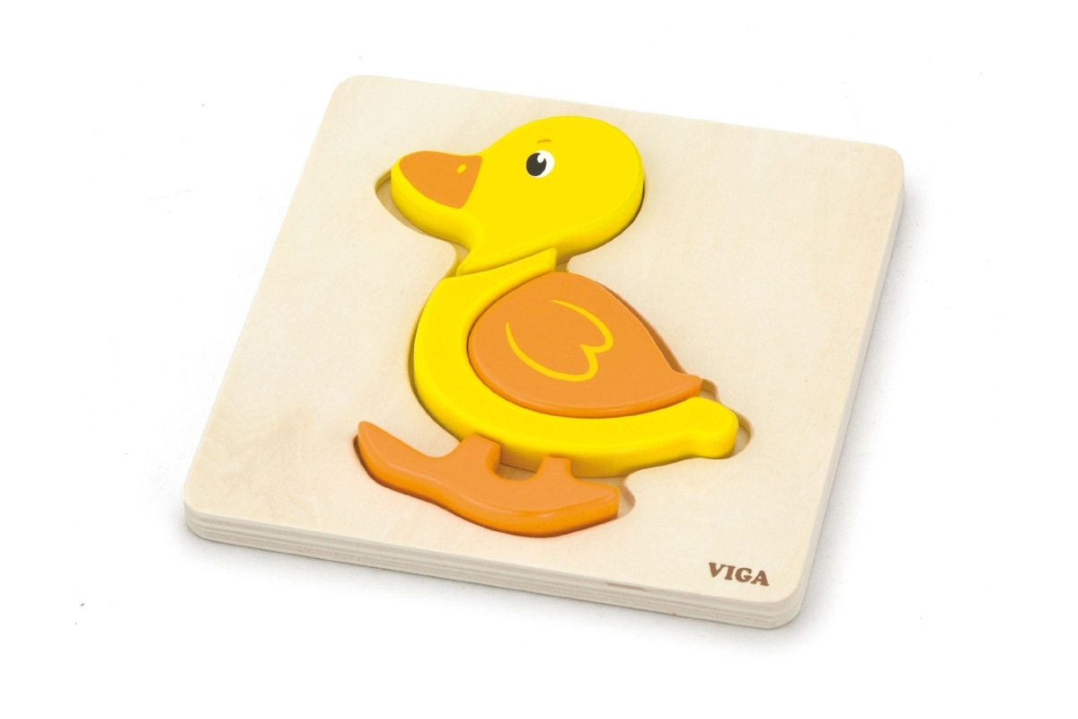 Lesena sestavljanka – vstavljanka za najmlajše z motivom račke. Mere račke približno 13 × 11 cm. Mere embalaže približno 15,5 × 18 × 2 cm. Starost 18m+.