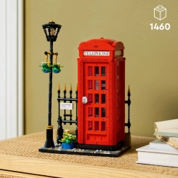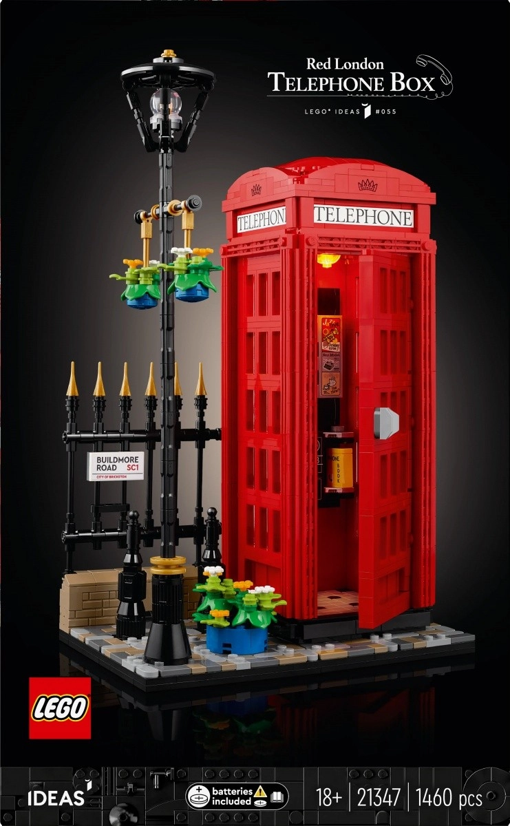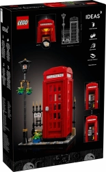 LEGO Ideas Rdeča londonska telefonska govorilnica je ustvarjalen set, ki zvesto prikazuje klasično britansko telefonsko govorilnico K2. Model vključuje svetlobno LEGO kocko za osvetlitev notranjosti, kar ustvari avtentično atmosfero. Z možnostjo izbire med retro telefonom ali slogom 80. let lahko notranjost prilagodite osebnim željam.