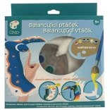 Zabavna kreativna igrača za otroke in odrasle: uravnotežena ptička, ki jo lahko pobarvate po svoje. Zaradi pametnega uravnoteženja stabilno stoji na konici kljuna na katerikoli ravni površini. Spodbuja ustvarjalnost, fino motoriko in ponuja takojšnji učinek presenečenja pri uravnoteženju.