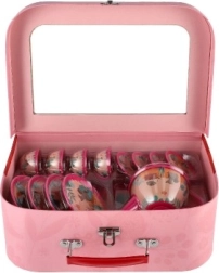 Čajni set je shranjen v čvrstem kovčku z ročajem in kovinskim zapiranjem. Otroci ga lahko vzamejo kamor koli in ga po igri zlahka pospravijo.
