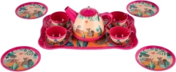 Set vsebuje čajnik, skodelice in krožničke z igrivimi motivi živalic in cvetlic. Otroci lahko povabijo prijatelje, punčke ali plišaste igrače ter vadijo komunikacijo, domišljijo in fino motoriko. Primerno za otroke od 3 let.
