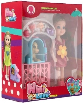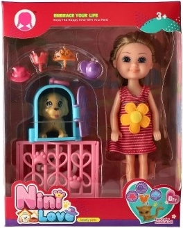 - Komplet punčka s hišnim ljubljenčkom in dodatki