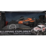 Uživajte v adrenalinski vožnji s hitro RC buggy vozilom v privlačni oranžni barvi. Avto je zasnovan za stabilnost in zabavo na različnih površinah – od gladkih tal do lažjega terena. Zahvaljujoč tehnologiji 2,4 GHz ne prihaja do motenj signala, zato lahko tekmujete tudi z več modeli hkrati.