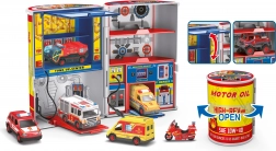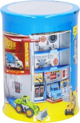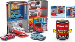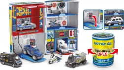 Ta avtoservis je idealno darilo za vsakega majhnega navdušenca avtomobilov. Priložen je en kovinski avto in ponuja štiri različne različice: policijska, gasilska, gradbena in dirkalna. Vsa vozila imajo prosta kolesa, kar omogoča enostavno manevriranje.