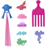Del kompleta so različni barvni dodatki za stiliranje, kot so glavnik, sponke in trakovi, ki spodbujajo otrokovo ustvarjalnost.