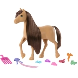 Konjiček Barbie Pepper ima dolgo in čudovito grivo, ki jo je mogoče zlahka česati in okraševati s pramenom za pripenjanje ter različnimi sponkami.