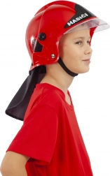 Ta rdeča otroška gasilska čelada je odličen dodatek h kostumu malega junaka. Lahka plastična konstrukcija zagotavlja udobno nošenje, medtem ko izrazita barva in avtentičen videz igri gasilcev dodata verodostojnost. Idealna za pust, otroške zabave ali vsakodnevno igro doma.