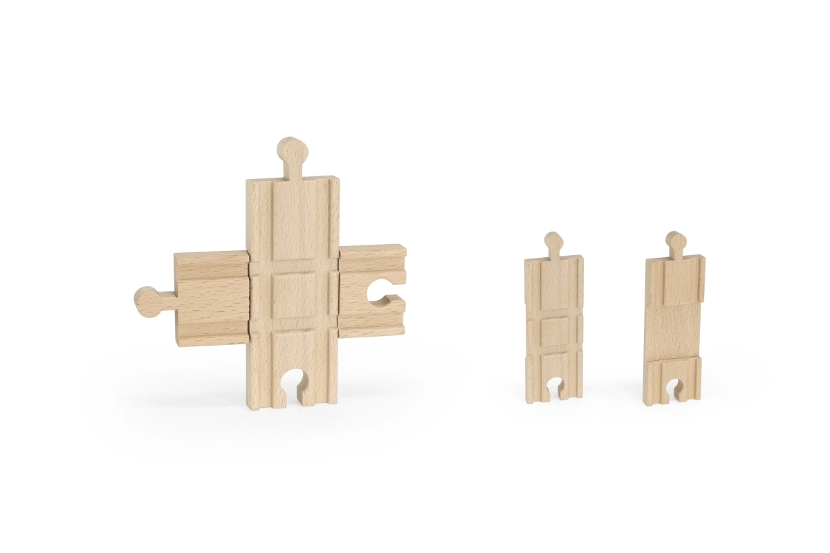 Paket vsebuje 2 kosa tirov – križišče. Tiri znamke Viga so združljivi s tiri znamke Maxim. Pakirano v vrečki. Dimenzije križišča približno 12,5 × 4 × 1 cm. Starost 3+.