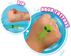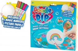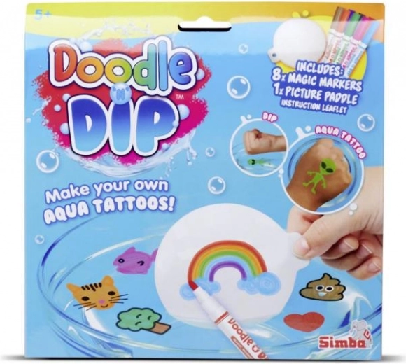 Potopite se v svet barv in ustvarjalnosti z našim setom Doodle o Dip, ki vam omogoča ustvarjanje osupljivih vodnih tetovaž. Set vsebuje osem čarobnih flomastrov v različnih barvah ter posebno risalno podlogo. Narišite svojo sliko na podlogo, nato jo potopite v vodo in opazujte, kako se motiv loči ter postane del vaše ustvarjalnosti – idealno za zapestje ali drug del telesa.