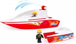 Dve premični figurici posadke se namestita v kokpit in na palubo, zato lahko otroci zlahka ustvarjajo svoje zgodbe – od gašenja požarov do drznih reševalnih operacij. Odporna izdelava in plavajoča zasnova sta idealni za igro doma in na prostem.