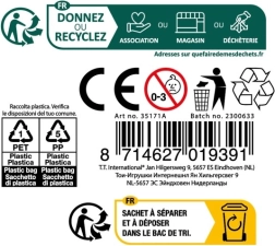 Elastike so velikosti XXL, kar omogoča enostavno rokovanje za majhne roke. Izdelek je varen in primeren za otroke od 3 let, podpira kreativnost in fino motoriko.
