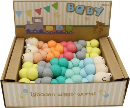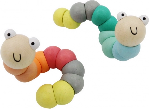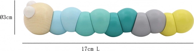 Lesena gosenica 17 cm v dveh barvah. Odlično razvojno orodje za otroke. Idealna za vsako igralnico.