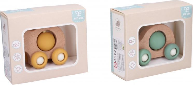Leseni avtomobilček živalca s kroglico v 4 različicah. Spodbuja ustvarjalnost in fino motoriko pri otrocih.