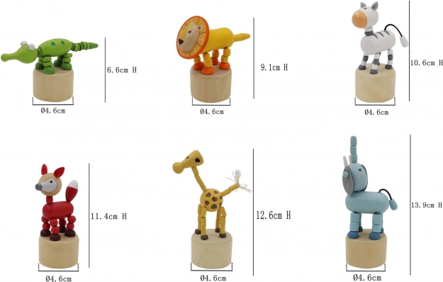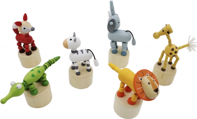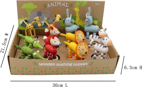 Lesena stiskalna živalca safari - igrive variante žirafa, slon, lev, zebra, krokodil, lisica. Odlično darilo za otroke.