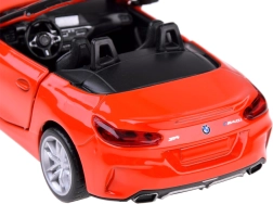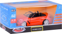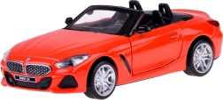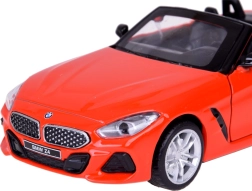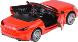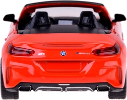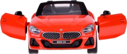 Ta podrobno izdelan kabriolet BMW Z4 M40i izstopa po kakovostni izvedbi za avtentičen videz in igro. Kovinska karoserija, gumijasta kolesa in plastično podvozje zagotavljajo trdnost in dolgo življenjsko dobo. Po odprtju vrat se aktivirajo zvoki troblje in alarma, ki jih dopolnjujejo utripajoče luči spredaj in zadaj. S pritiskom modela na podlago zaženete zvok zagona in delovanja motorja, pri čemer se prižge tudi instrumentna plošča.