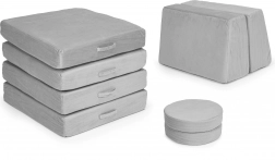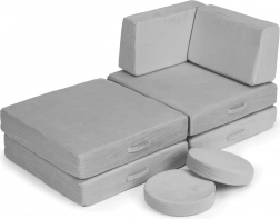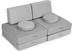 Odkrijte igrivo pohištvo, ki raste z otroki. Ta modularni otroški kavč iz 8 lahkih elementov se zlahka preuredi v sofo, puf ali ležišče. Zahvaljujoč mehki peni, zlahka snemljivim in pralnim prevlekam ter univerzalni sivi barvi otrokom nudi udoben prostor za počitek in ustvarjalno igro. Največja nosilnost 120 kg potrjuje vzdržljivost in kakovost znamke ECOTOYS.