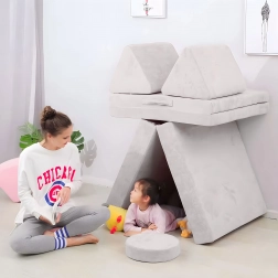 Osem različnih elementov otrokom vsak dan omogoča ustvarjanje novih postavitev – od kavča prek igralnega bunkerja do udobne podlage za branje. Spodbuja ustvarjalnost in DIY veščine.