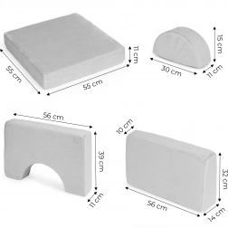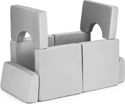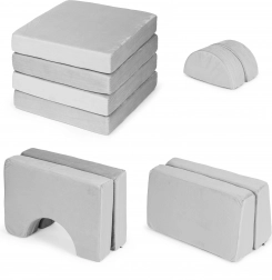 Iz 10 mehkih delov lahko zgradite sedišče, tunel, most ali bunker – spodbuja domišljijo ter razvija motoriko in sodelovanje otrok.