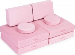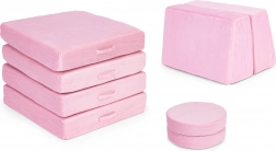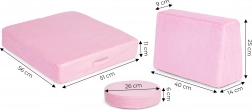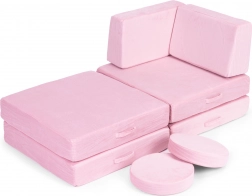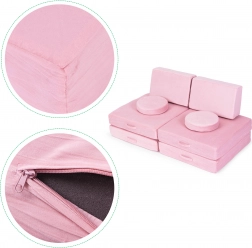 Prevleke z zadrgo zlahka snamete in operete, kar olajša ohranjanje čistoče tudi pri vsakodnevni uporabi. Zaradi univerzalnega dizajna v rožnati barvi se kavč poda tako v moderne kot igrive interierje in podpira kreativno DIY sestavljanje – od hišk do »vozil«.