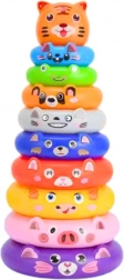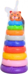 Na vrhu te piramide je prisrčen mali tiger, ki doda celoten šarm in spodbuja igro. Igranje vključuje zlaganje obročev od največjega do najmanjšega, kar pomaga pri razvoju logičnega razmišljanja in ročno-očesne koordinacije.