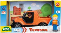 Iščete vzdržljiv avto za male dirkače in graditelje? Pickup LENA Truckies navduši s svojo trdno konstrukcijo, enostavnim upravljanjem in zabavnimi funkcijami brez potrebe po baterijah. Odpirajoča se kabina z aktivno figurico spodbuja domišljijo in razvoj fine motorike.