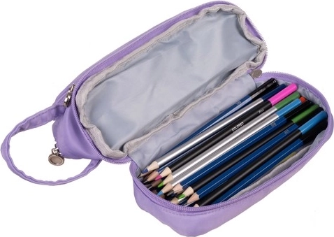 Prvi predal z elastičnimi zankami za pisala, drugi prostoren za barvice, tretji brez razdelkov za univerzalno uporabo.