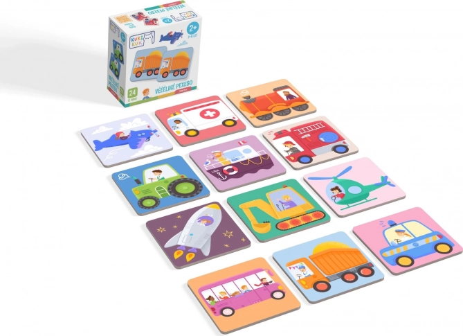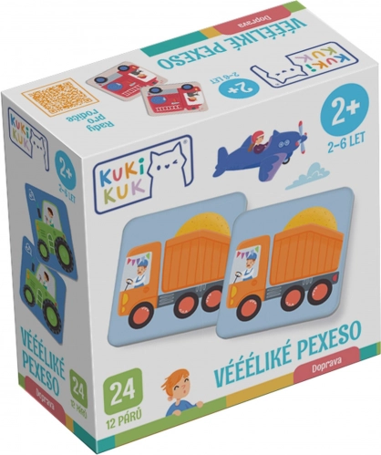 Odkrijte zabavno in izobraževalno pexeso s prometnimi sredstvi znamke KukiKuk. Set vsebuje 24 velikih kart velikosti 11 × 11 cm iz čvrstega 2 mm kartona, idealnih za majhne otroške roke. Igra razvija spomin, pozornost in besedišče ter vsebuje tudi nasvete za starše in pedagoge za dodatne aktivnosti in različice igre. Izdelano na Češkem, priporočeno za otroke 2–6 let.