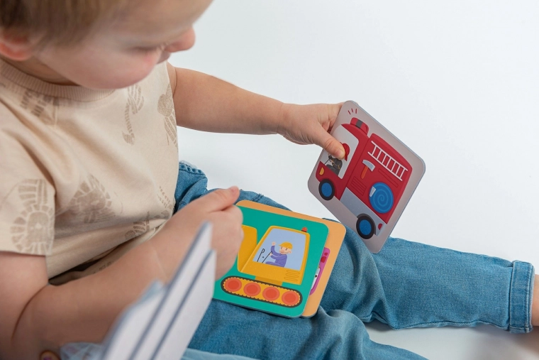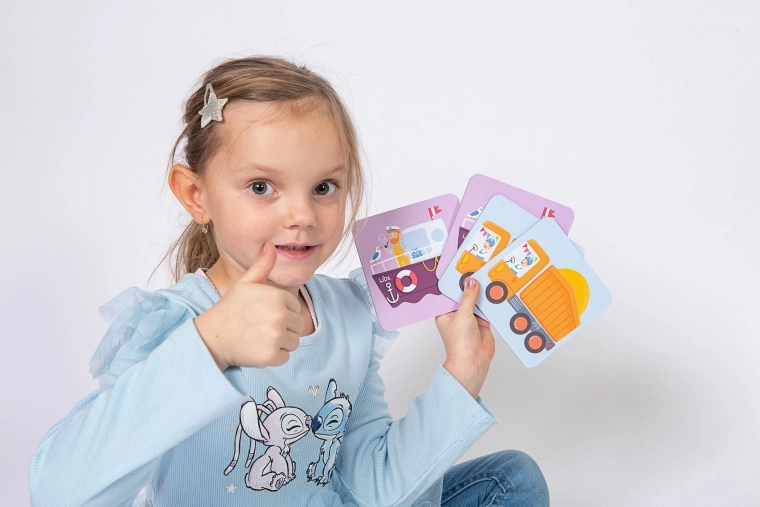 Del pakiranja so navdihujoči namigi za aktivnosti: prvo iskanje parov, pripovedne igre, posnemanje zvokov vozil, risanje po kartah in vaje za pozornost. Igra podpira razvoj fine motorike, spoznavanja sveta in komunikacijskih veščin.