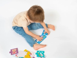 Véééliké puzzle trio Moj dan je pametna in zabavna izobraževalna igra, ki otroke popelje skozi njihove vsakodnevne dejavnosti. Vsaka trojica ima enako barvno ozadje in zahvaljujoč enakim spojem lahko zgodbe sestavljate na več načinov – otroci tako vadijo razvrščanje, povezovanje in samostojno razmišljanje.