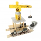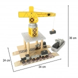 Leseni pristaniški žerjav je idealen igralni set za male ljubitelje prevoza in gradbeništva. Vsebuje rumen žerjav, tovorno ladjo in vozila za pretovarjanje kontejnerjev. Igrača spodbuja kreativno razmišljanje in razvijanje ročnih spretnosti.