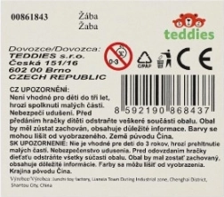 Žaba je zasnovana z natančnimi detajli in jasnimi barvami, ki pritegnejo pozornost in razvijajo otroško domišljijo.