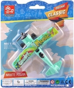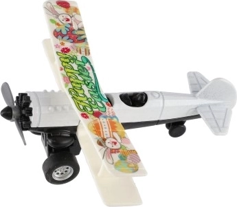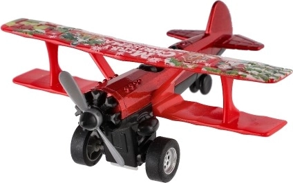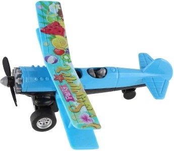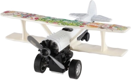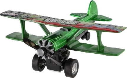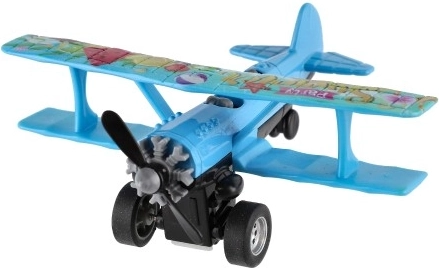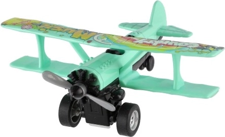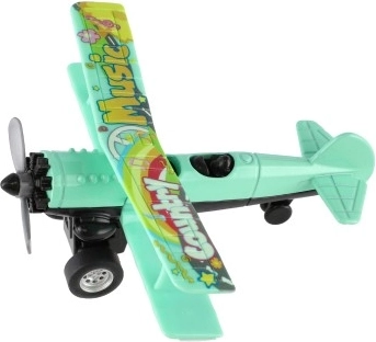 Barviti dvokrilec bo razveselil vsakega malega pilota. Zahvaljujoč vzmetnemu (pull-back) mehanizmu po spuščanju steče naprej, med vožnjo pa se zavrti sprednji propeler. Trpežna izvedba iz kovine in plastike, kompaktna velikost 10 × 11 cm ter mešanica privlačnih barv iz njega naredijo odlično igračo za otroke od 3. leta dalje.