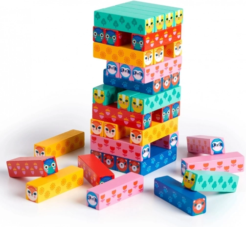 Zabaven leseni stolp z motivi živali in narave prinaša napetost in smeh za vso družino. Igralci postopoma vlečejo kose iz stolpa in jih polagajo na vrh – komu se roke tresejo najmanj? Vsebuje 40 lesenih blokov, spodbuja fino motoriko, potrpežljivost in zbranost. Primerno od 3 let.