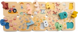 Ta sestavljanka pomaga otrokom naučiti se osnovne številke in šteti do 10. Zasnovana je tako, da podpira razvoj fine motorike. Vsebuje: