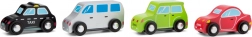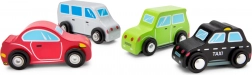 Ta komplet vključuje štiri lesene avtomobilčke s preprostim in barvitim videzom, ki pritegne pozornost najmlajših. Avtomobilčki so lahki in enostavni za prijemanje, zato so idealni za razvoj fine motorike. Otroci jih lahko uporabljajo za ustvarjalno in domišljijsko igro, kar hkrati pomaga razvijati njihove izrazne sposobnosti.