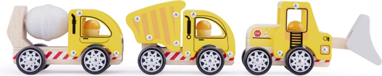 Vsako vozilo je skrbno izdelano iz trpežne plastike in ponuja različne možnosti igre. Z njimi si lahko otroci ustvarijo svoje malo gradbišče, ki spodbuja domišljijo ter izboljšuje reševanje problemov in koordinacijo rok in oči.