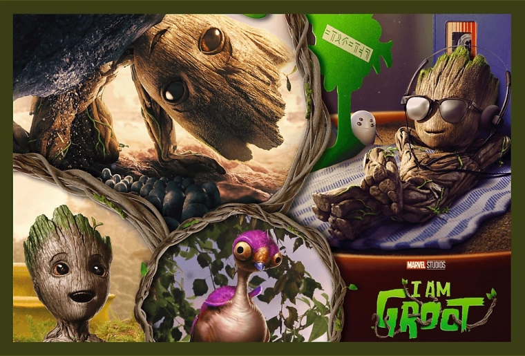 Uživajte v dveh sestavljankah v enem pakiranju! Sestavljanki 2×200 koščkov z motivom I am Groot iz univerzuma MARVEL Guardians ponujata kakovostno izdelavo, ekološke materiale s certifikatom FSC in po sestavi ustvarita sliki velikosti 410 × 275 mm.