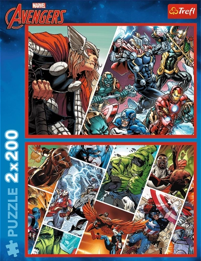Uživajte v dvojnem odmerku zabave s kompletom sestavljank 2×200 kosov z motivom Avengers – Branilci sveta. V paketu sta dve samostojni sestavljanki iz kakovostnih materialov s certifikatom FSC; vsaka ustvari sliko velikosti 410 × 275 mm in razveseli vse oboževalce MARVELA.